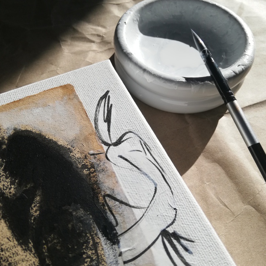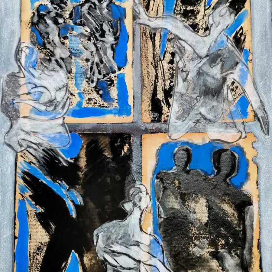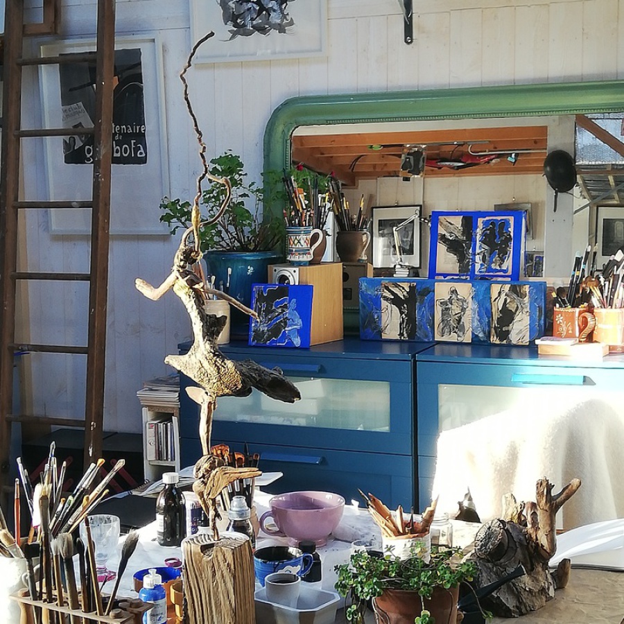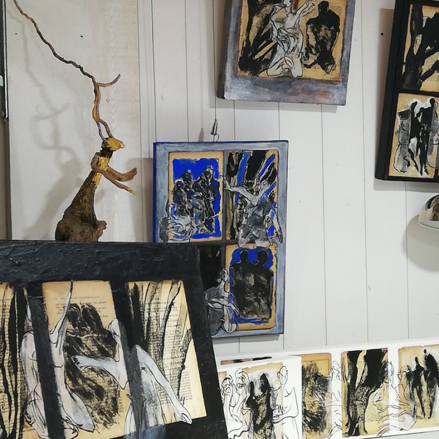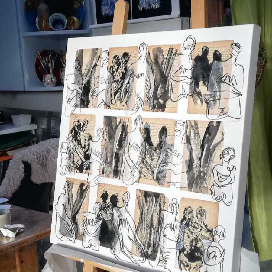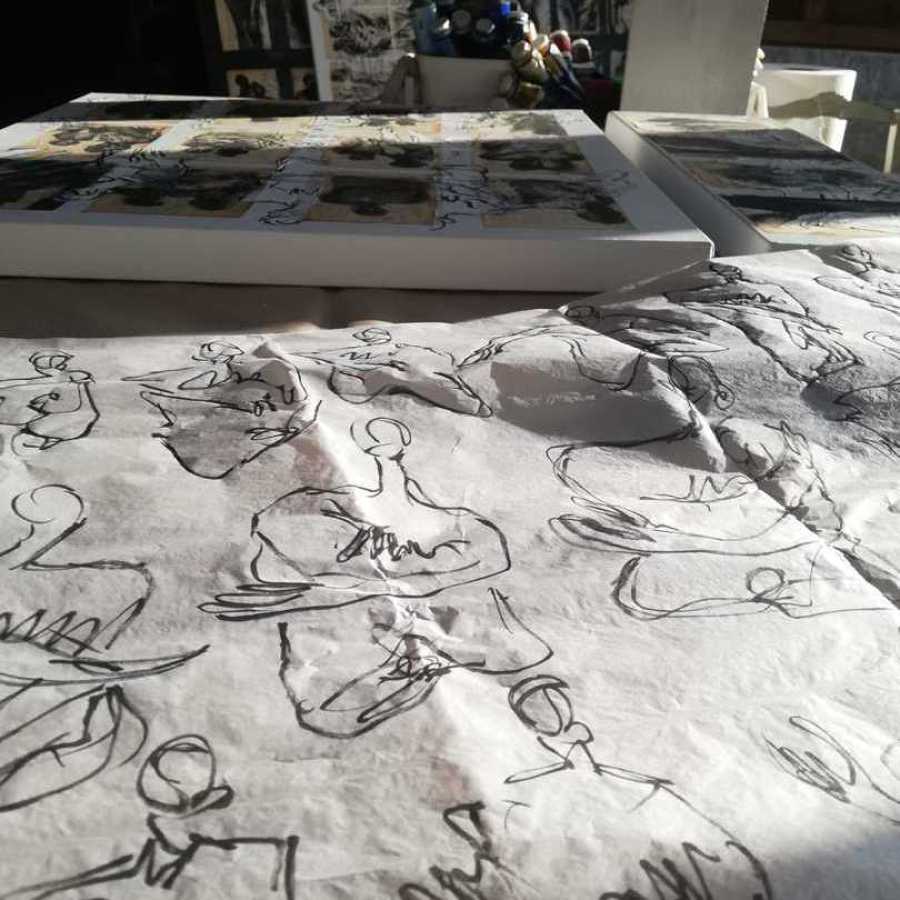 Dans l’infini des possibles, sur le fond du papier déjà imprimé, une histoire est racontée, vieux livres revisités, est posé un geste qui détermine une option : un événement graphique surgit, s’inscrit dans la matière, Corps/Accord, couple… Le monotype apparaît.